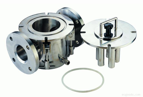 流體式過濾器是將采用由無縫不銹鋼管和稀土合金釹鐵硼,并采用特殊的制作方法制作而成的(磁棒),安裝在由無縫不銹鋼管構(gòu)成的通體中,使用法蘭將其安裝在生產(chǎn)線輸送管道中或出料口處,當(dāng)含鐵的液體或漿料通過時,受到磁力棒的吸引,將含鐵的物質(zhì)牢固的吸附在管壁上,以設(shè)備的完好和產(chǎn)品的**。